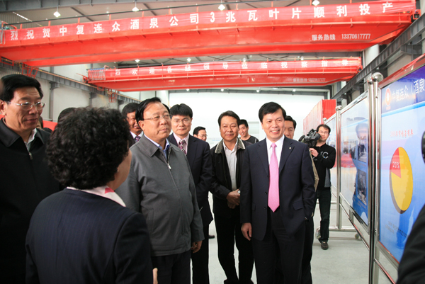 2010年5月12日,酒泉國家風(fēng)電裝備高新技術(shù)產(chǎn)業(yè)化基地正式掛牌,標(biāo)志著甘肅新能源基地建設(shè)進(jìn)入了一個新的階段。甘肅省委書記、省人大常委會主任陸浩出席掛牌儀式并為基地揭牌,省委副書記、省長徐守盛也參加了儀式。隨后陸浩、徐守盛在中國復(fù)合材料集團(tuán)有限公司董事長兼總經(jīng)理張定金的陪同下視察了中復(fù)連眾酒泉葉片基地。