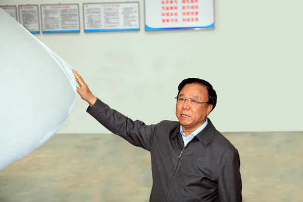 隨后,陸浩、徐守盛等各位領(lǐng)導(dǎo)和嘉賓相繼視察了包括中復(fù)、華銳、金風(fēng)科技的幾個酒泉產(chǎn)業(yè)化基地的風(fēng)電企業(yè)。在來到中國復(fù)材3兆瓦的葉片車間之后,陸浩認(rèn)真聽取了張定金的介紹匯報(bào),當(dāng)看到中復(fù)生產(chǎn)的3兆瓦葉片時非常高興,并與其他領(lǐng)導(dǎo)和嘉賓一起出席中復(fù)3.0MW風(fēng)力機(jī)葉片的投產(chǎn)儀式,中國復(fù)材副總經(jīng)理、中復(fù)連眾集團(tuán)董事長任桂芳、總經(jīng)理喬光輝陪同參觀。