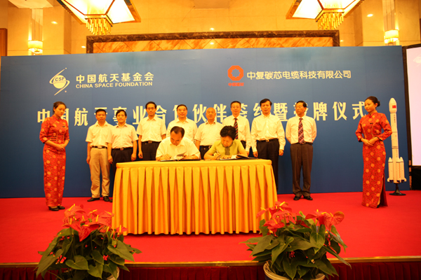 6月26日,中復(fù)碳芯電纜科技有限公司與中國航天基金會在京共同舉行簽約暨授牌儀式,由中國航天基金會授予中復(fù)碳芯公司“中國航天事業(yè)合作伙伴”稱號及牌匾。中國航天基金會理事長張建啟、秘書長張玉江,中國建材集團(tuán)董事長宋志平,中國復(fù)合材料集團(tuán)董事長張定金,中復(fù)碳芯董事長任桂芳、執(zhí)行董事謝建平等雙方領(lǐng)導(dǎo)出席了儀式。本報(bào)總編輯孟憲江應(yīng)邀出席了儀式。中復(fù)碳芯公司成為電線電纜行業(yè)內(nèi)唯一獲此殊榮的專業(yè)碳纖維復(fù)合芯導(dǎo)線生產(chǎn)企業(yè)。
